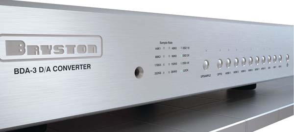 D/A převodník Bryston BDA-3 doplňuje špičkovou analogovou kvalitu o nejnovější digitální technologie. Maximální rozlišení převodníku je 32bit/384kHz (D/A čipy AKM AK4490 EQ) a BDA-3 je plně DSD kompatibilní. Je schopen zpracovat všechna současná rozlišení, včetně "Quad" DSD-256. BDA-3 má 6 digitálních vstupů. Dva koaxiální (cinch i BNC),  optický Toslink, 2 x USB a samozřejmě nechybí profesionální AES/EBU. Po digitálním dekódování postupuje signál do plně symetrické analogové výstupní části pracující v čisté třídě A. Převodník lze ovládat a případně ugradovat pomocí rozhraní Ethernet, USB a RS-232.